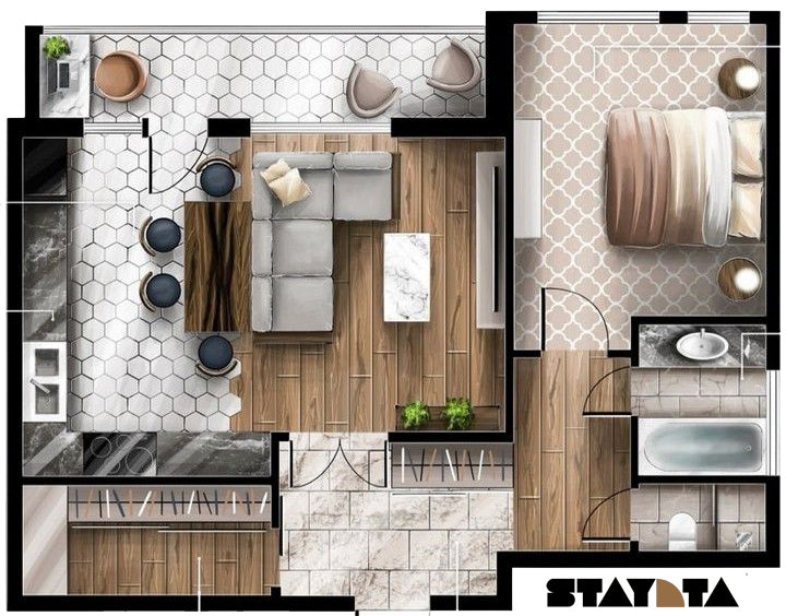 С нашия над 10 години опит в интериорния дизайн, ние знаем важността на това да се усвои правилно всеки сантиметър от пространството. Затова решихме да създадем STAYA, където всеки да може да получи професионална помощ на достъпна цена, за най-важната част от един проект -ФУНКЦИЯТА.